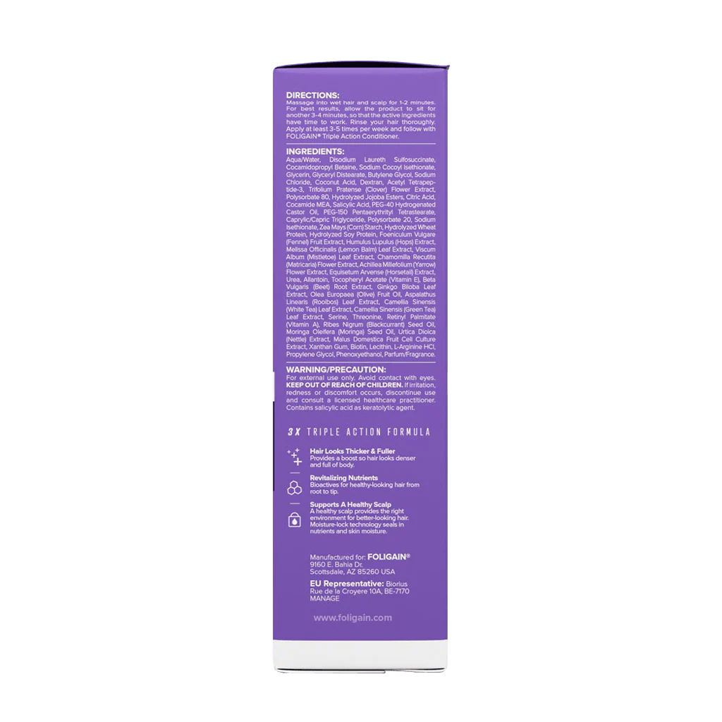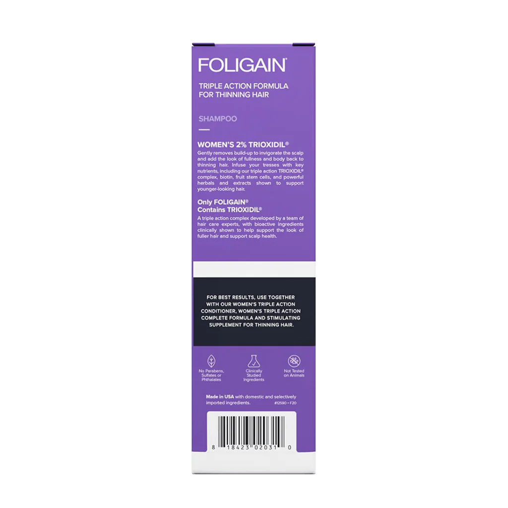 FOLIGAIN Anti-hårudfald Shampoo til kvinder er en mild og plejende shampoo, specielt udviklet til kvinder med fint, tyndt eller svækket hår. Shampooen indeholder 2% Trioxidil, en avanceret ingrediensblanding kombineret med biotin og naturlige planteekstrakter, som er udvalgt til at pleje både hår og hovedbund.