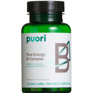 Puori Pure Energy B-Complex er et B-vitamin kompleks, der støtter energiniveau, mental ydeevne og kroppens energistofskifte. Produktet indeholder flere essentielle B-vitaminer i aktive former, som kroppen let kan optage.